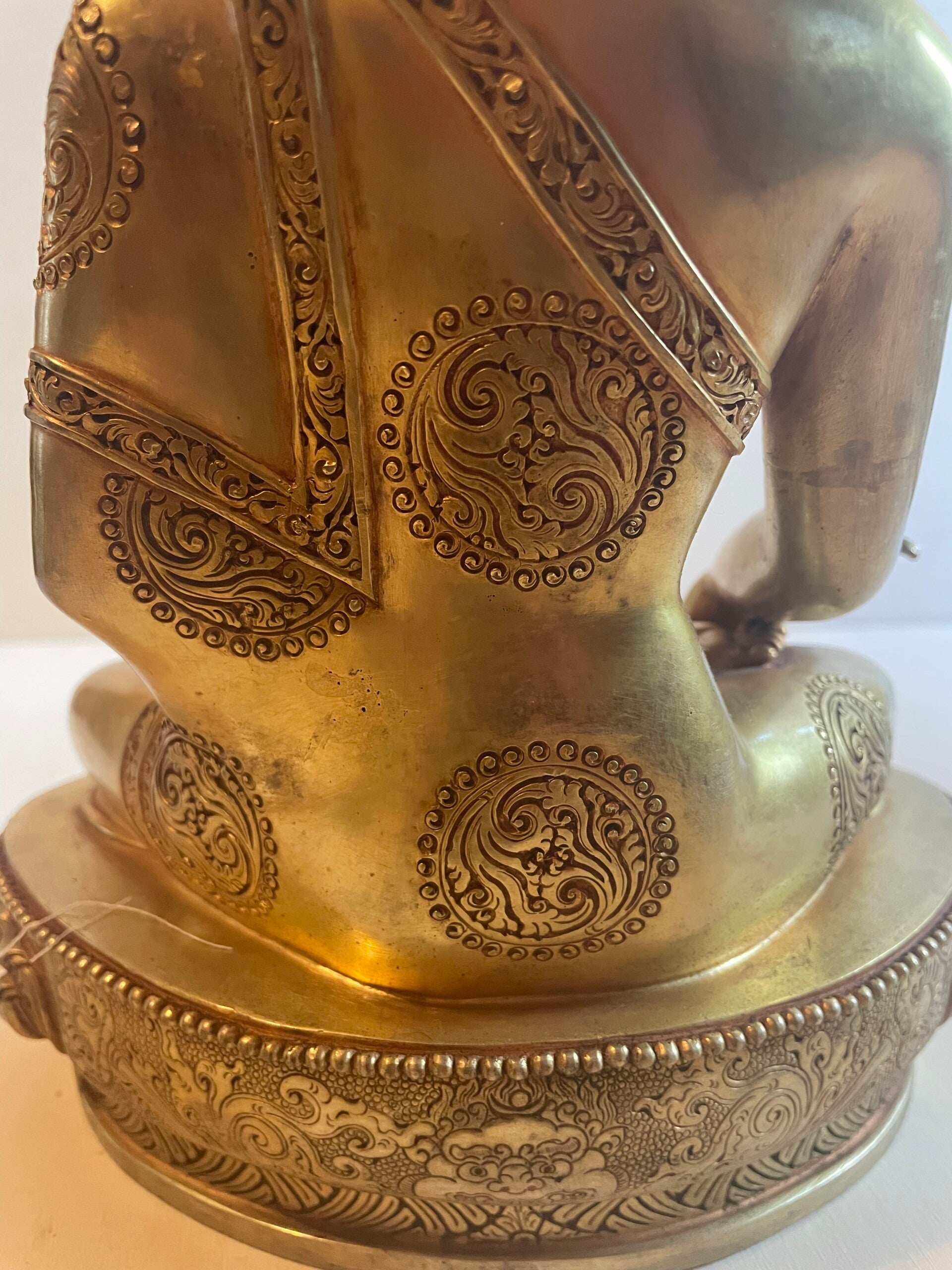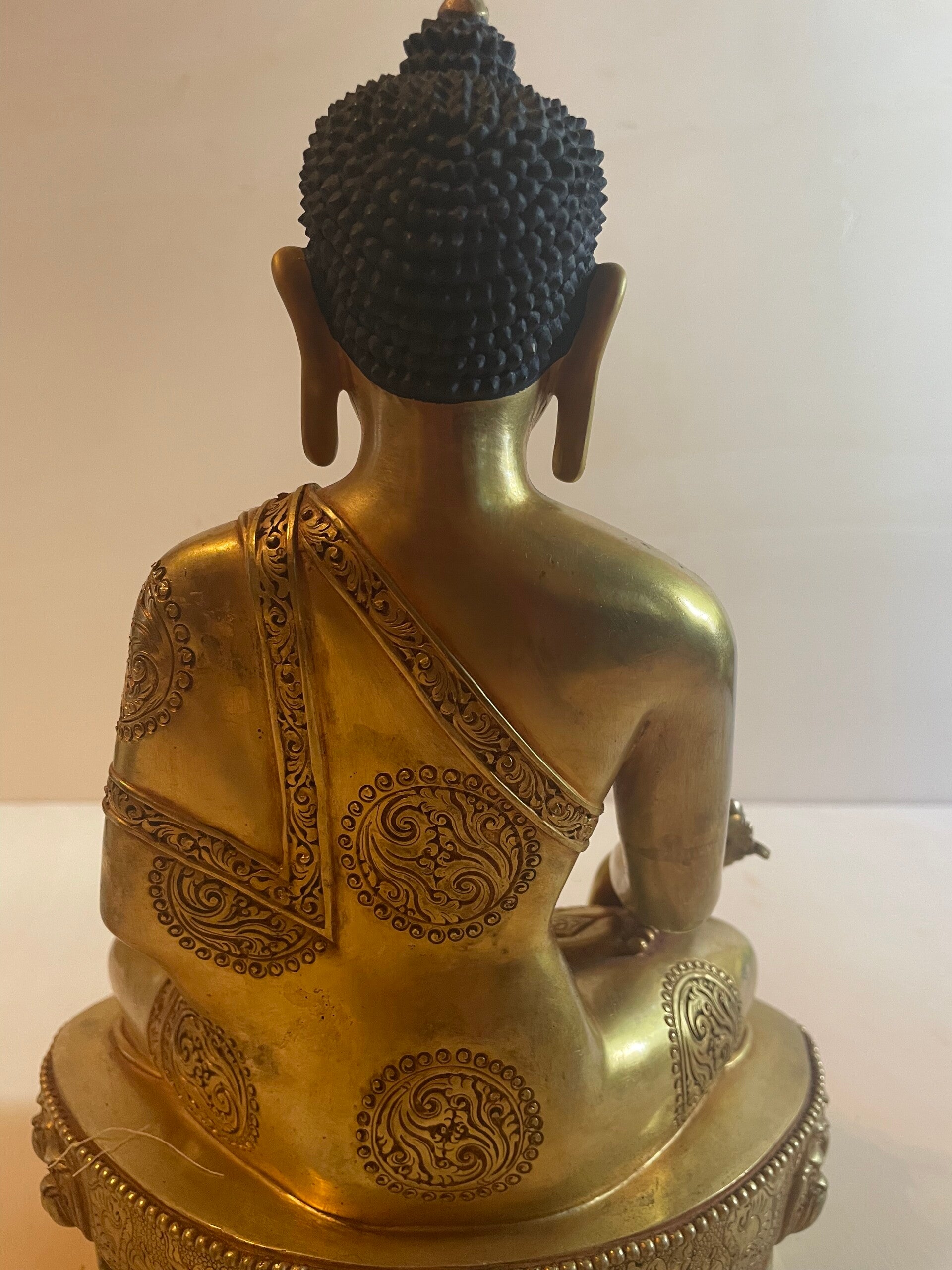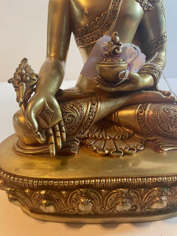 Die wunderschöne Medizin-Buddha-Statue ist reich von Hand graviert und mit 24 Karat feuervergoldet.