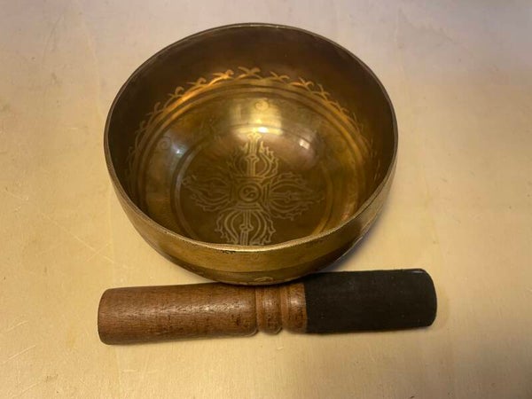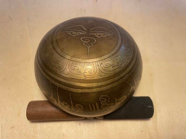 Tibetische Klangschale mit Mantra-Gravur und buddhistischen Symbolen 11cm