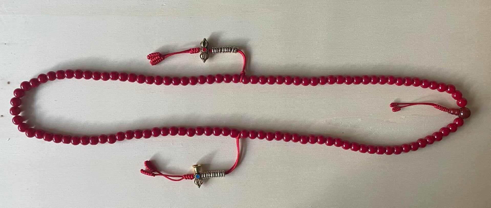 Diese kraftvolle Mala-Kette aus roter Koralle ist mehr als nur ein spirituelles Accessoire – sie ist ein Talisman voller Energie, Schutz und Erdverbundenheit. In der buddhistischen und hinduistischen Lehre steht rote Koralle für Mut, Vitalität und das Wurzelchakra, das unsere Verbindung zur Erde symbolisiert.