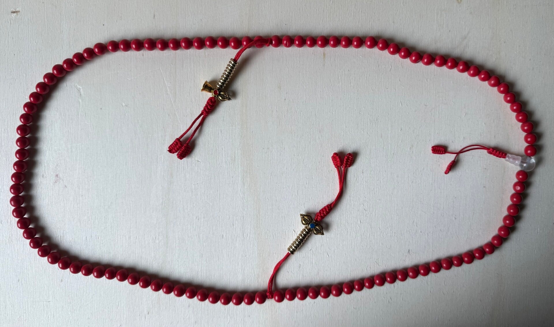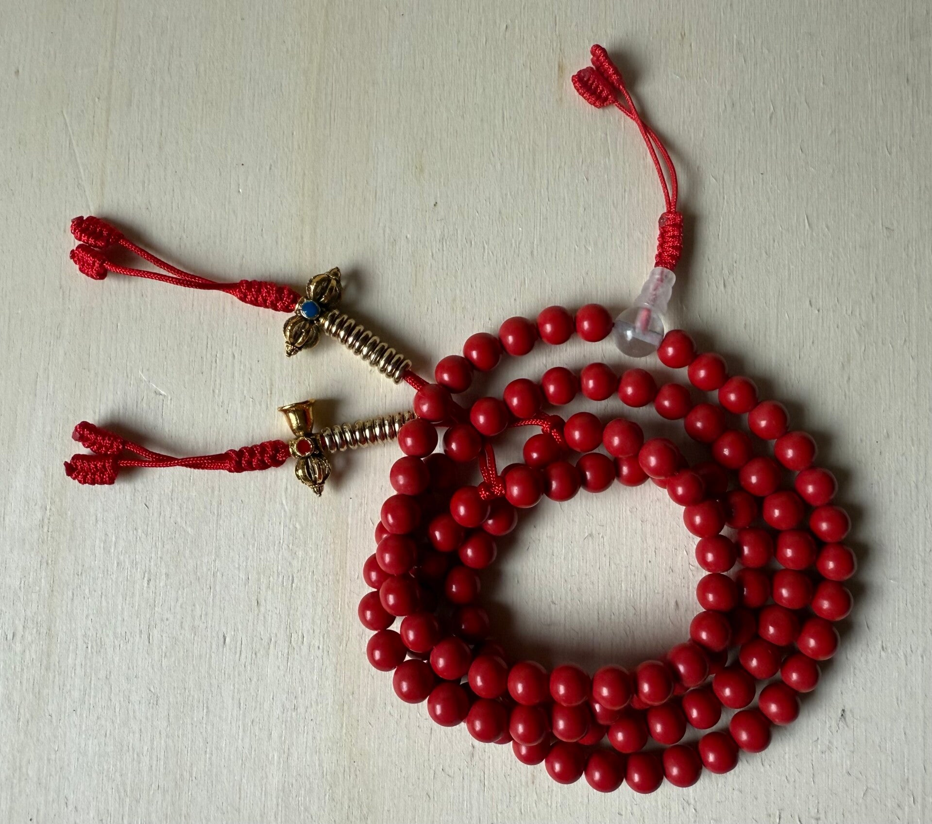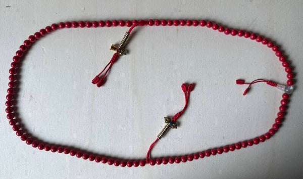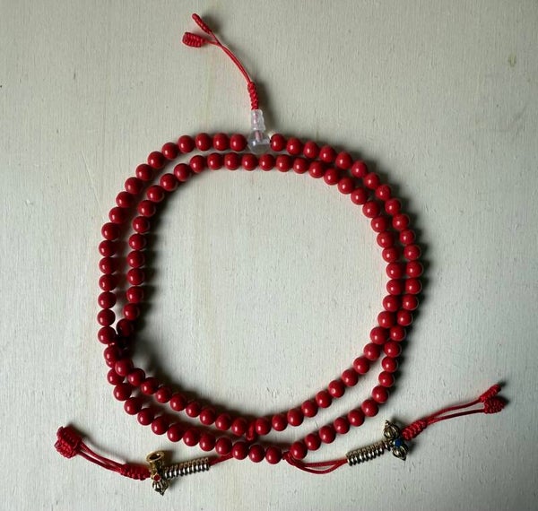 Diese kraftvolle Mala-Kette aus roter Koralle ist mehr als nur ein spirituelles Accessoire – sie ist ein Talisman voller Energie, Schutz und Erdverbundenheit. In der buddhistischen und hinduistischen Lehre steht rote Koralle für Mut, Vitalität und das Wurzelchakra, das unsere Verbindung zur Erde symbolisiert.