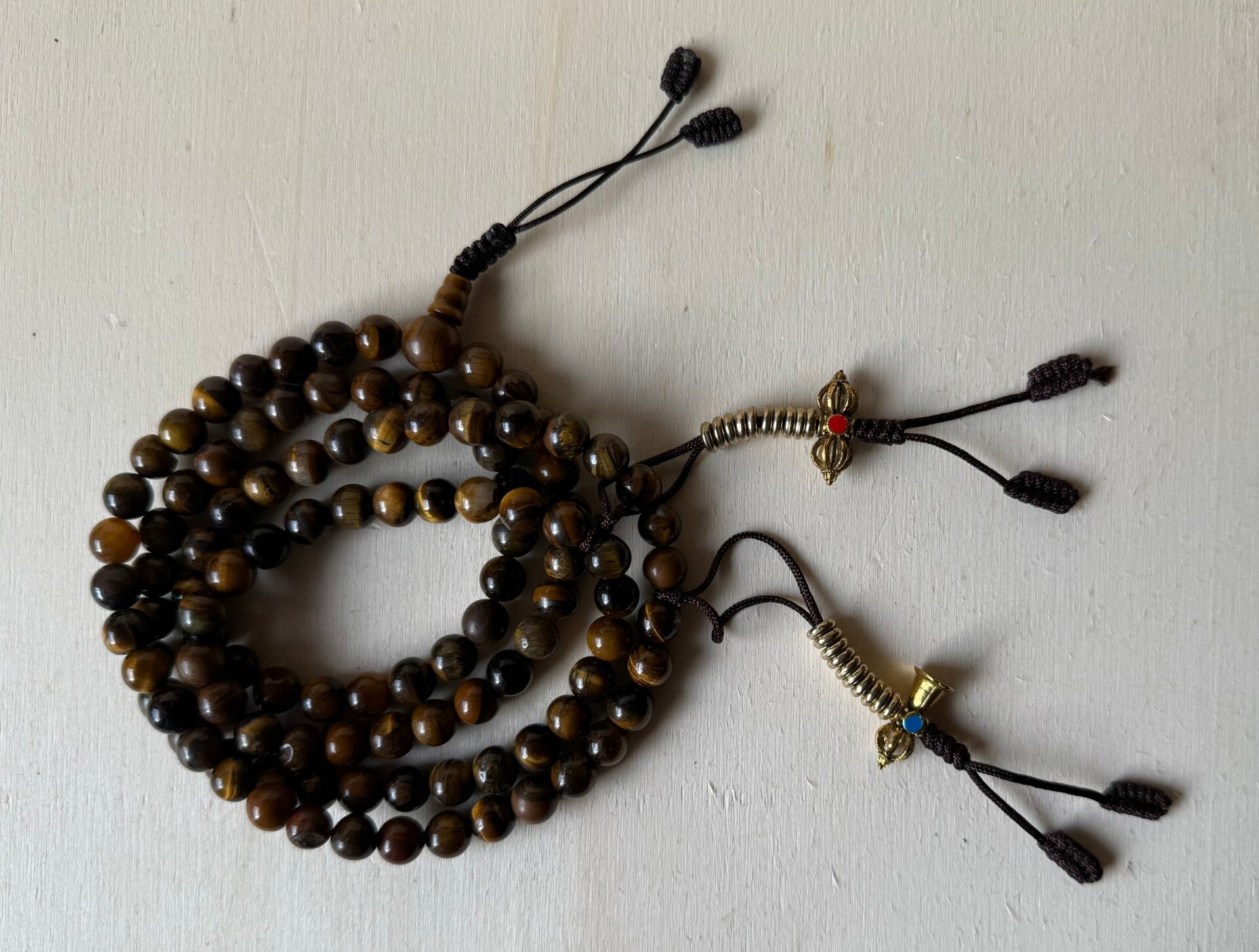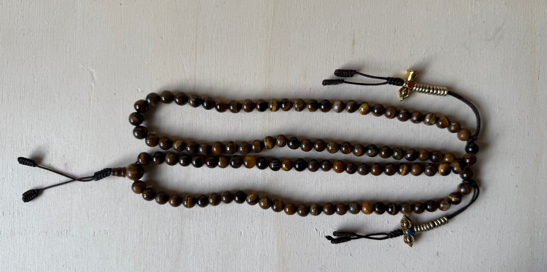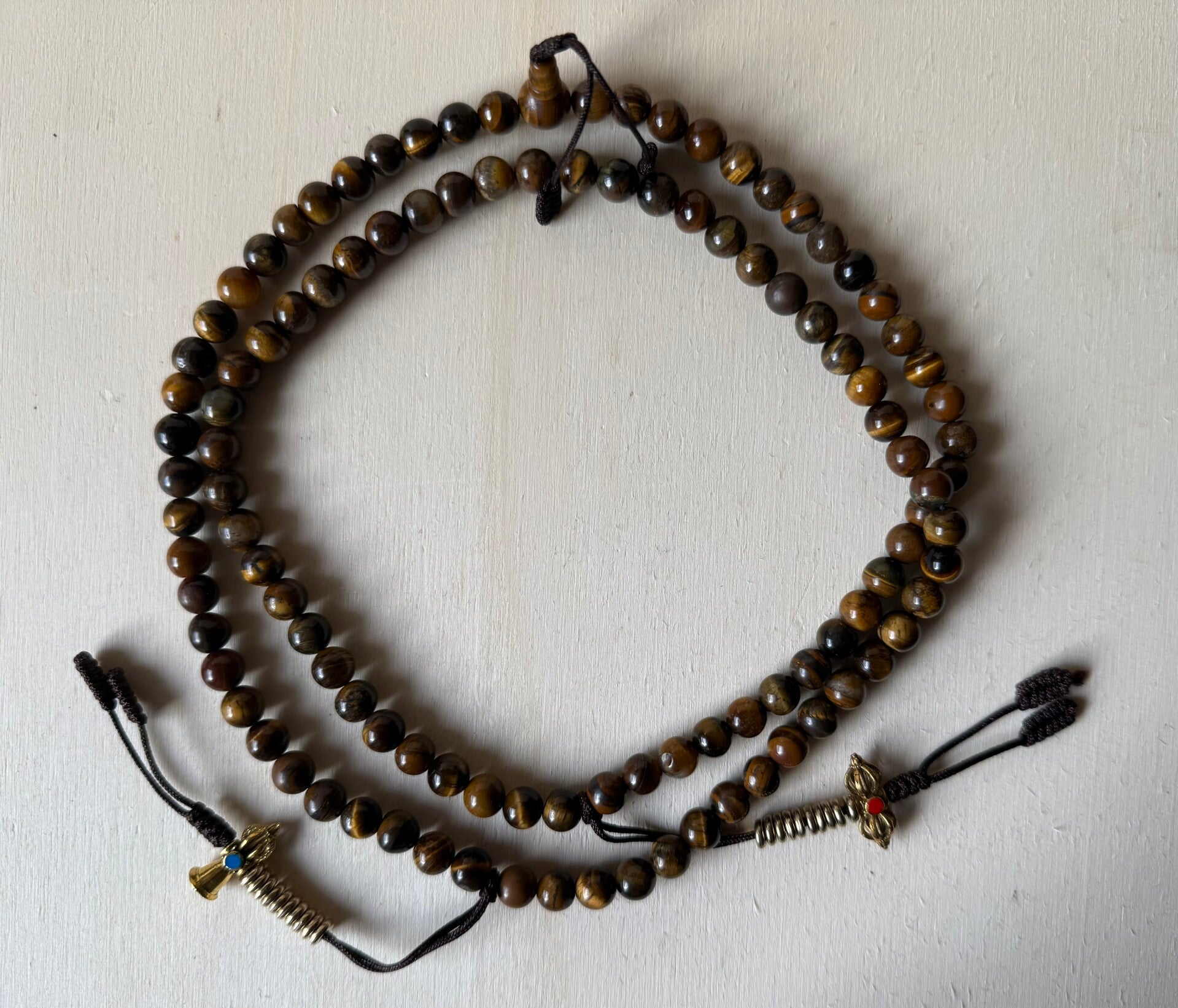 Tigerauge Mala – 108 Perlen | Mit Zähler & Tasche | Handgefertigt in Nepal